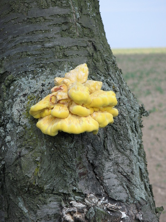 Das Foto gehört zur Serie "Baumpilze". Es zeigt einen Schwefelporling (Laetiporus sulphureus) an einem Kirschbaum. Er zählt zu den holzzersetzenden Baumpilzen. Das Bild ist unter CC0 lizenziert und kann somit frei verwendet werden.
